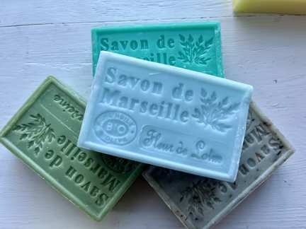 Vidunderligt duftende mild sæbebar, fremstillet på økologisk olie. Provence, Frankrig.